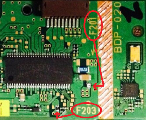-If F203 blew you should replace your load/eject motor as well (PN: KLD-002 or KLD-001 depending on your system).